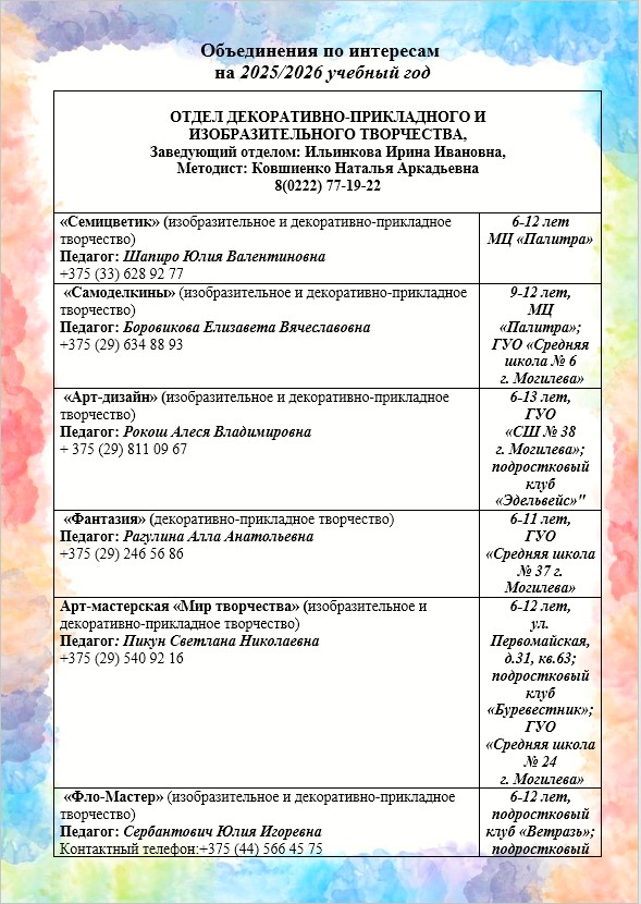 Подробнее об отделе художественного творчества