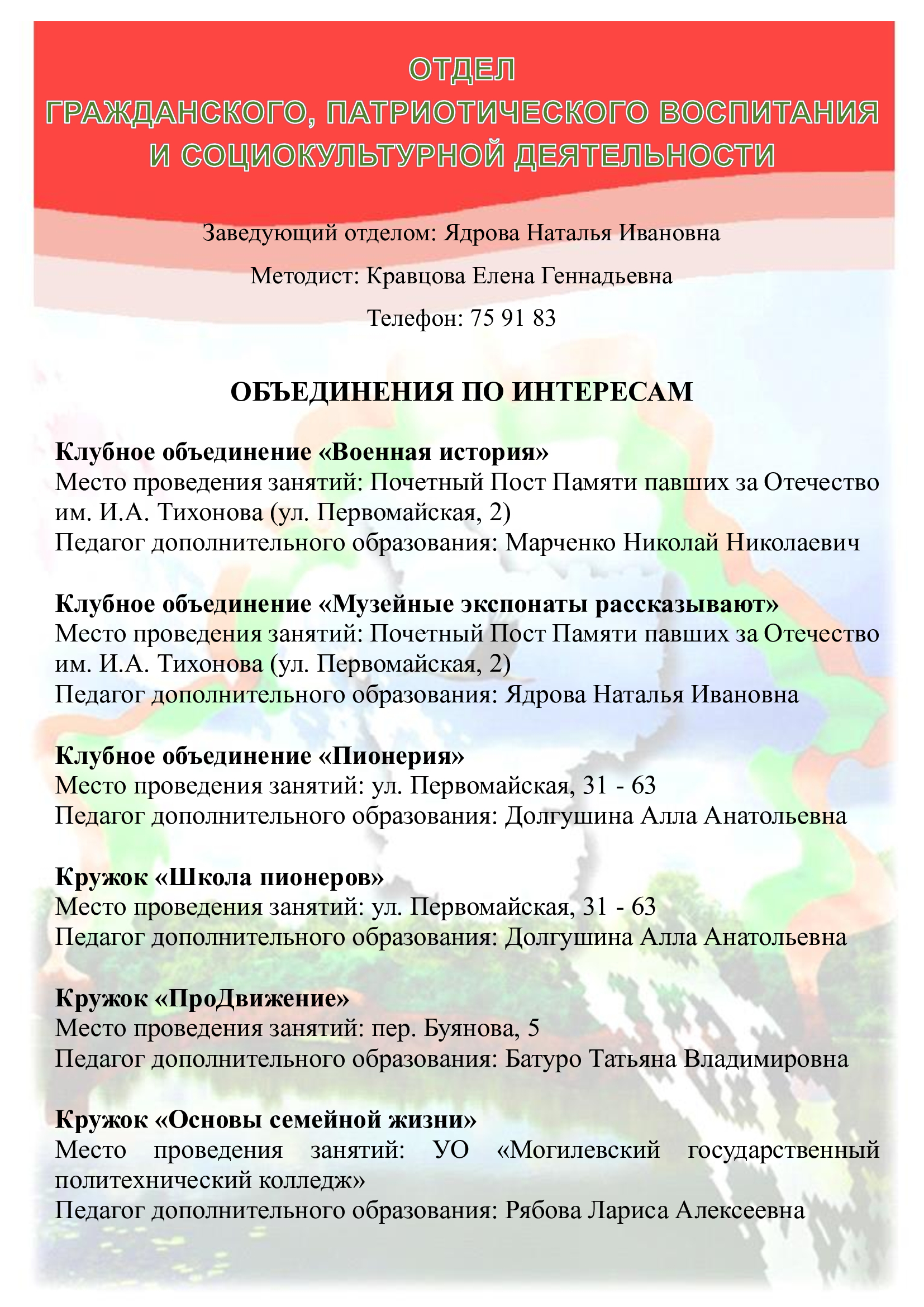 Заведующий отделом: Гончарова Ирина Александровна 8 044 711 53 58.
