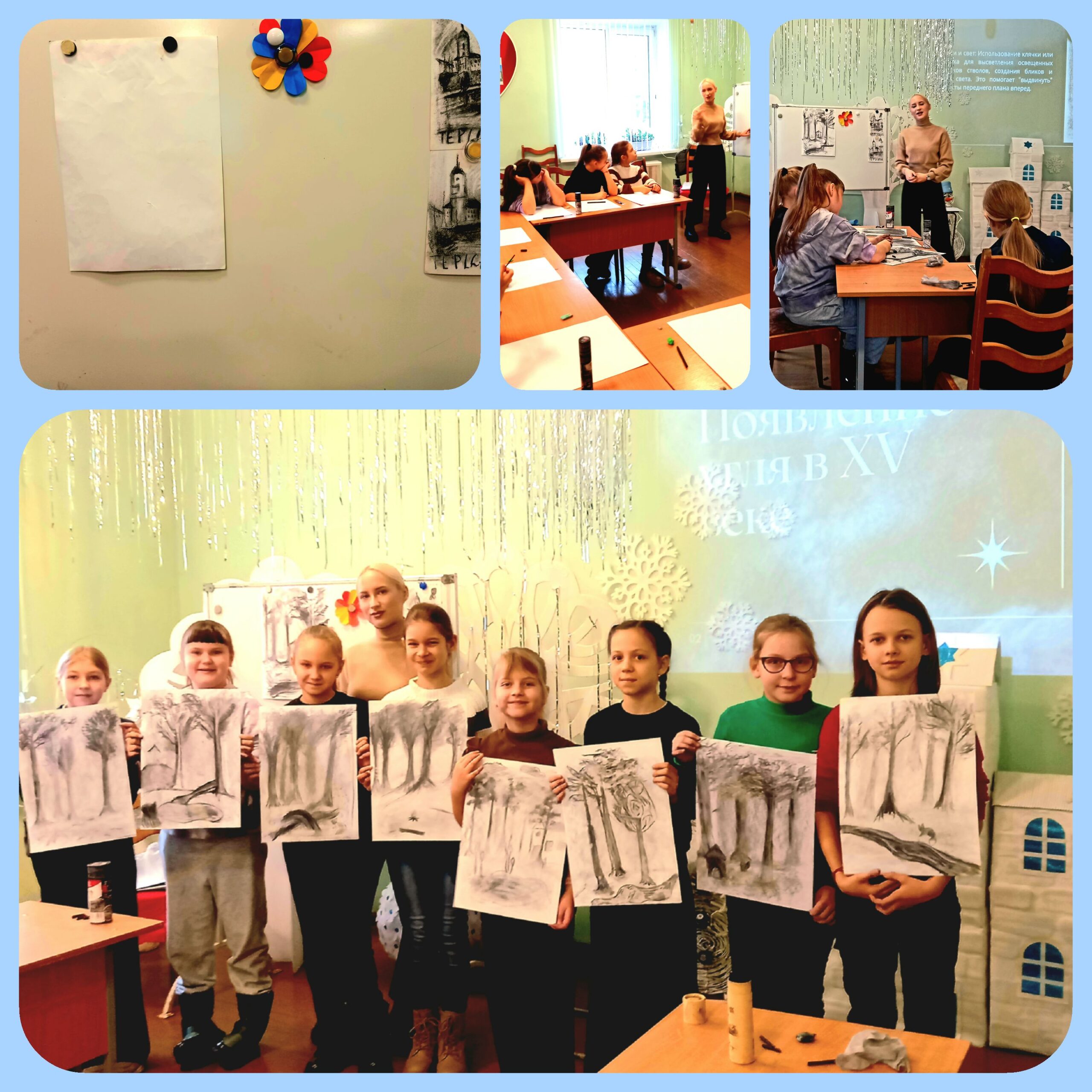 Занятие прошло продуктивно, обучающиеся с интересом слушали новый материал об эпохе Возрождения, о древесном и прессованном угле, который активно использовался в этот период времени художниками для создания шикарных произведений искусств. Учащиеся получали новые знания и осваивали новый материал, создавая уже свои творческие работы. На протяжении всего занятия сохранялся интерес к деятельности и позитивное настроение. Обучающиеся были не просто умельцами, а настоящими художниками.